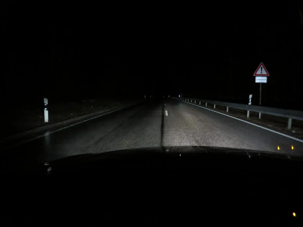 Eben bin ich von einer Probefahrt in der Dunkelheit zurück und habe nun einen deutlich positiveren Eindruck vom Abblendlicht als gestern Abend auf nasser Fahrbahn. Zudem wurden heute die Scheinwerfer neu eingestellt.